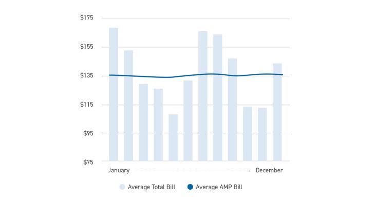 The AMP plan allows customers to spread their costs over the entire year, so they pay about the same each month. I&M calculates this amount by adding together charges for your last 12 months, or the number of months available. That total is divided by 12, or the number of months available, to get your average use per month. This amount may chance slightly each month based on usage. The difference between the amount you pay, and your actual bill is added or subtracted from a deferred balance throughout the year.