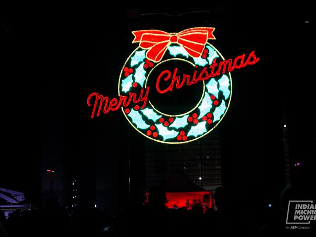 Night of Lights – The historic Merry Christmas wreath is ushering in the holiday spirit outside I&M’s headquarters in downtown Fort Wayne. The wreath was lit during the traditional Night of Lights event. It made its first appearance in 1937 and has more than 8,000 LED lights.