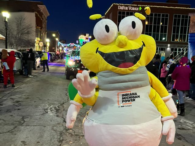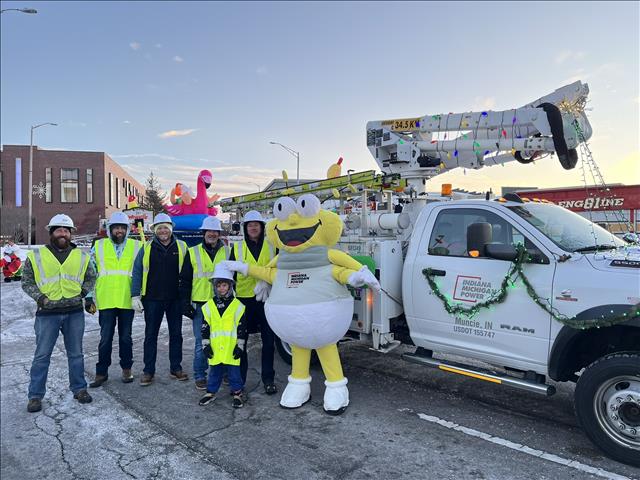 Holiday Parades and Lighting Assistance – I&M employees and everyone’s favorite mascot, Louie the Lightning Bug, spread holiday cheer in festive parades in Muncie and Elkhart. Employees decked out bucket trucks with lights and waved at customers in their communities where they live and work. Benton Harbor employees also helped decorate a large tree using their bucket trucks to let the holiday spirit shine for all to see.