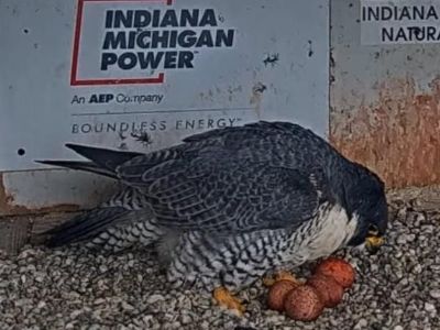“Our Falcon Cam is popular with falcon fans, local students and actually people all over the world,” said Kelly Rentschler, I&M Community Affairs manager for Fort Wayne. “We are excited to have eggs once again in the nesting box and look forward to naming and banding the chicks in a few months along with our partners, Soarin’ Hawk Avian Rescue (based in Fort Wayne), the Indiana Audubon Society and the Indiana Department of Natural Resources (DNR).”